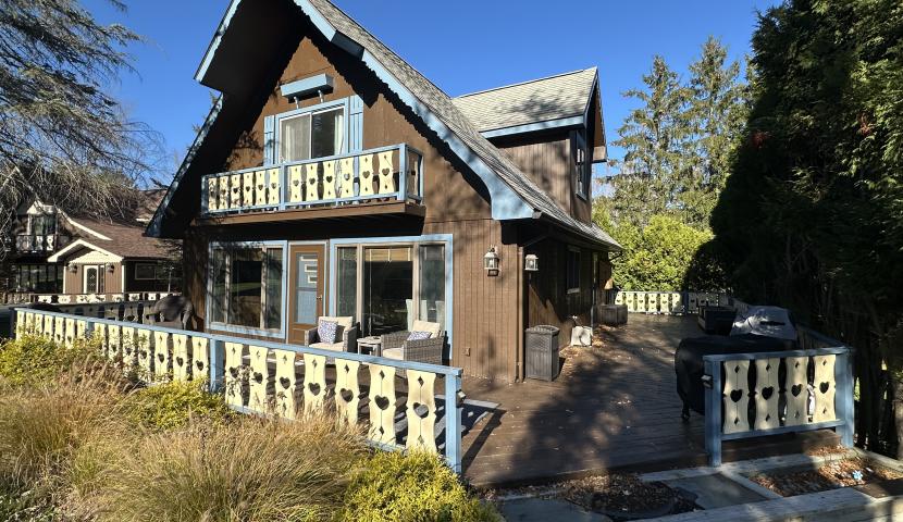 Village Chalet with 4 bedrooms, 2 bathrooms located on cul-de-sac. Large living room, updated kitchen, 2 bedrooms on main floor and 2 bedrooms on second floor. Wrap around deck perfect for entertaining family and friends. Free-standing wood stove for those chilly nights to keep you toasty. All new carpet throughout and updated foundation with vapor barrier. The Village of Four Seasons is a year round gated recreational community. Amenities include community water and sewer, trash removal, road maintenance and snow removal, adult and children's pools, tennis, and lake for fishing, kayaking and paddle boarding. Short term rentals are not permitted.