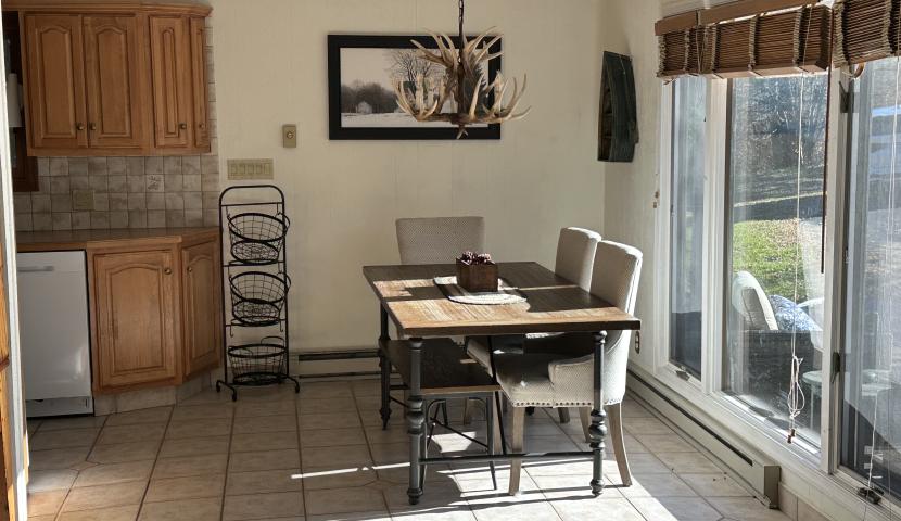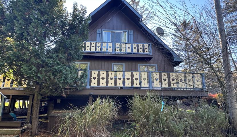Village Chalet with 4 bedrooms, 2 bathrooms located on cul-de-sac. Large living room, updated kitchen, 2 bedrooms on main floor and 2 bedrooms on second floor. Wrap around deck perfect for entertaining family and friends. Free-standing wood stove for those chilly nights to keep you toasty. All new carpet throughout and updated foundation with vapor barrier. The Village of Four Seasons is a year round gated recreational community. Amenities include community water and sewer, trash removal, road maintenance and snow removal, adult and children's pools, tennis, and lake for fishing, kayaking and paddle boarding. Short term rentals are not permitted.
